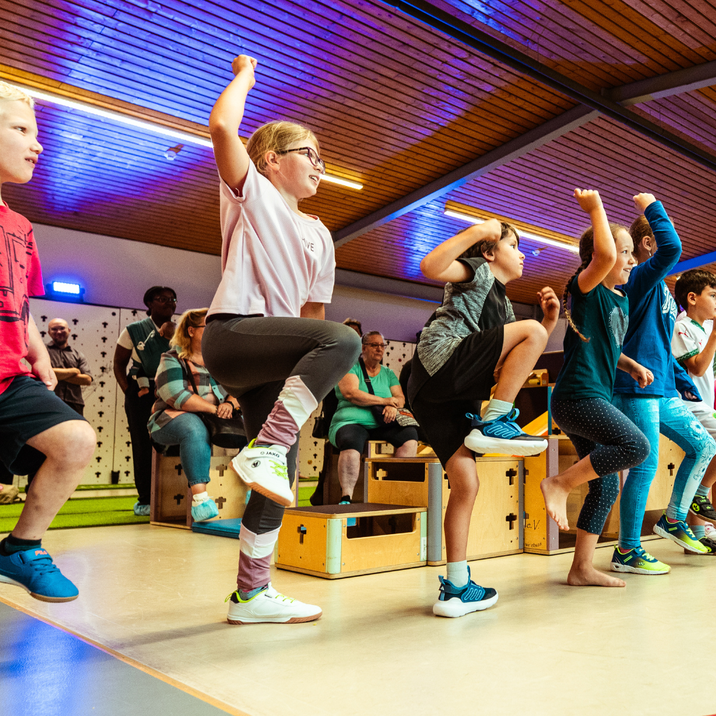 Für alle, die so richtig sportlich sind haben wir ein energiegeladenes Bewegungsangebot. Mit unserem Kletterparcours, lustigen Spielen, angeleiteten Übungen und moderner Technik wie dem CORTEX Trainer oder dem interaktiven PRAMA-System für Zirkeltrainings bringst du deinen Körper in Schwung und hast dabei jede Menge Spaß in der Gruppe.